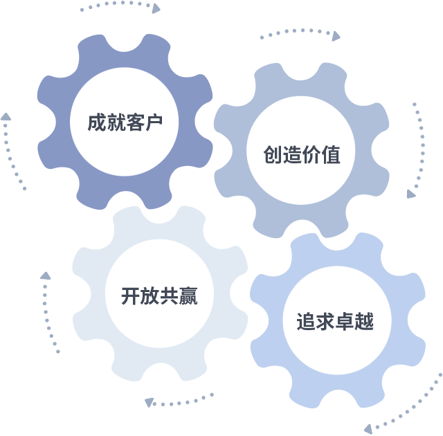 成就客户是一切决策的出发点,创造价值是衡量所有工作的标准,追求卓越是AG尊龙做事做人的态度,开放共赢是AG尊龙的格局也是最终的结果。价值观的齿轮环环相扣,推动着组织里的每个人不断向前。